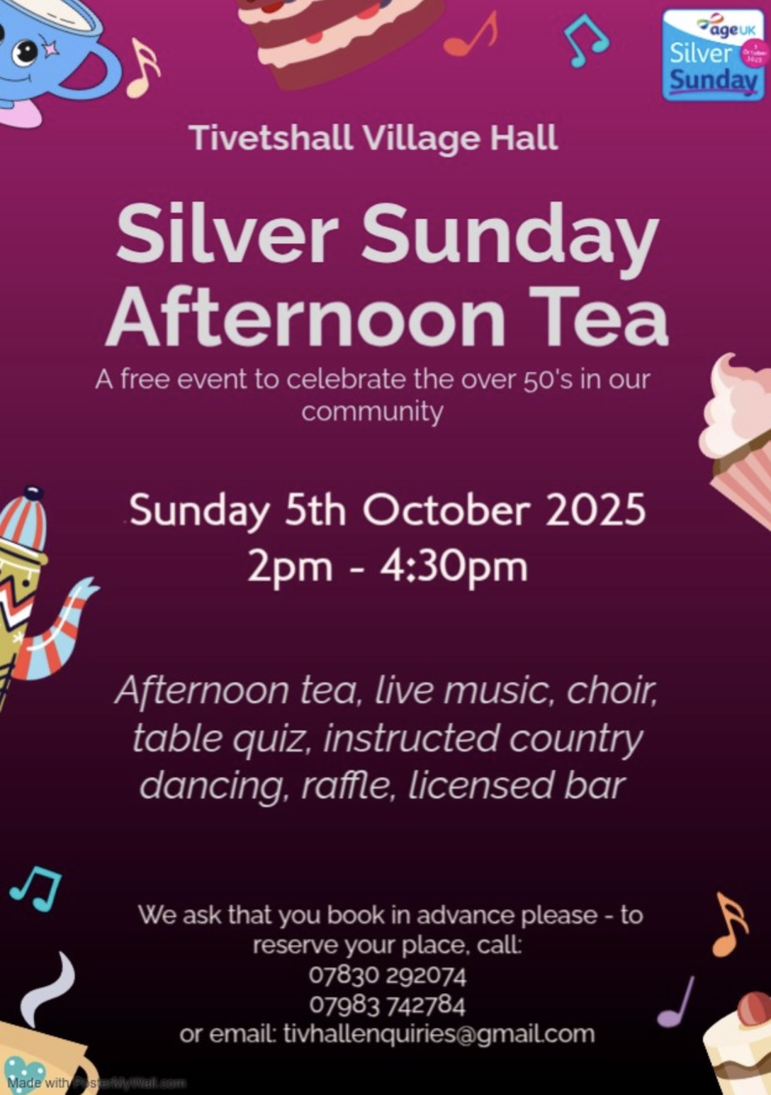 Afternoon Tea with music and instructed dancing, singers, raffle and a licensed pay bar.