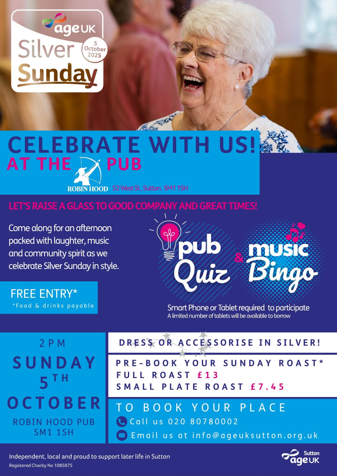 Let’s make this Silver Sunday one to remember! Bring your friends, make new ones, and celebrate the joy of our community with Age UK Sutton