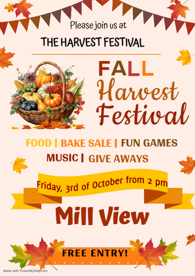 Our event starts at 2pm and will have live music, Food Stall, Bake Stall, Tombola, Harvest Hampers, a pumpkin carving competition and lot of fun, laughter and great time.