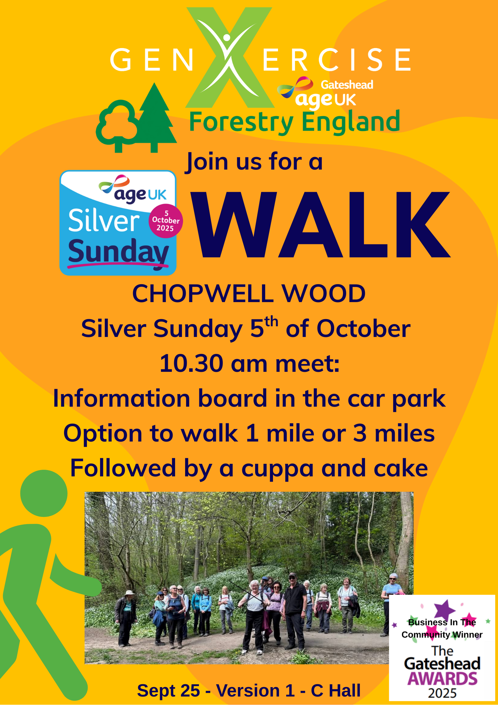 Join Age UK Gateshead and Forestry England for a Silver Sunday Social Walk and optional tea party!